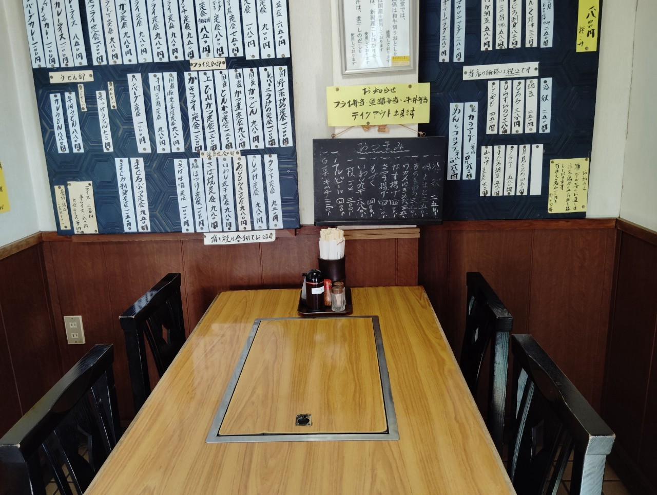 店内は昔ながらの定食屋さんといった雰囲気で4人がけテーブルが6席。