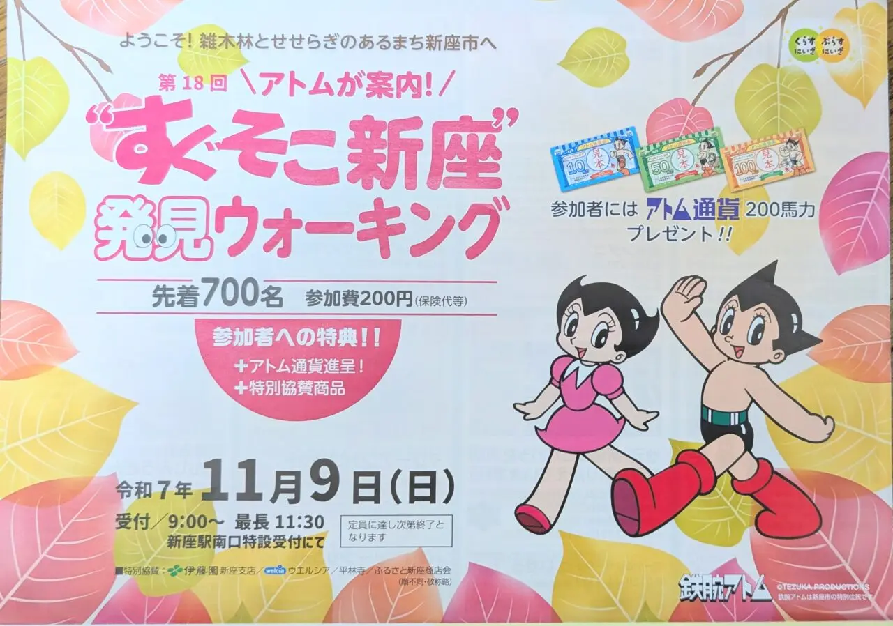 2025年11月9日(日)、新座市にて「第18回アトムが案内!すぐそこ新座発見ウォーキング」が開催されます。