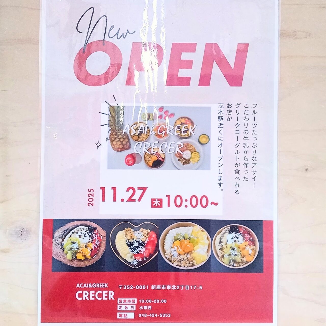 志木街道沿いでは29日に立教大学の近くにアサイーボウル専門店「アサイー工房」がオープします。アサイーボウルのお店が新座・志木で増えていますね。