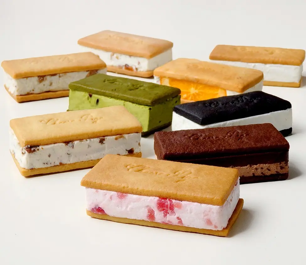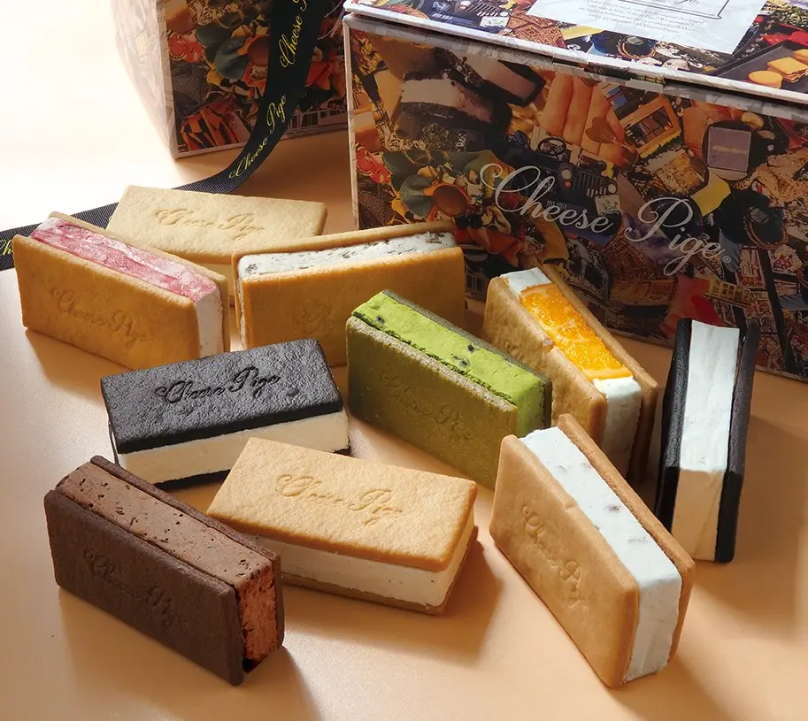 厚さ1.5cmの北海道産クリームチーズを、同じく北海道産小麦を使った特製クッキーでサンド。定番7種+季節限定3種の計10種を展開し、冷やして半解凍で楽しむ “進化系チーズスイーツ” として注目されています。