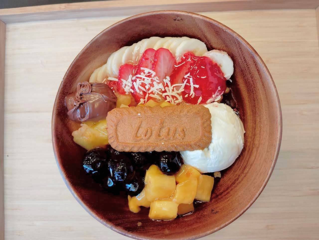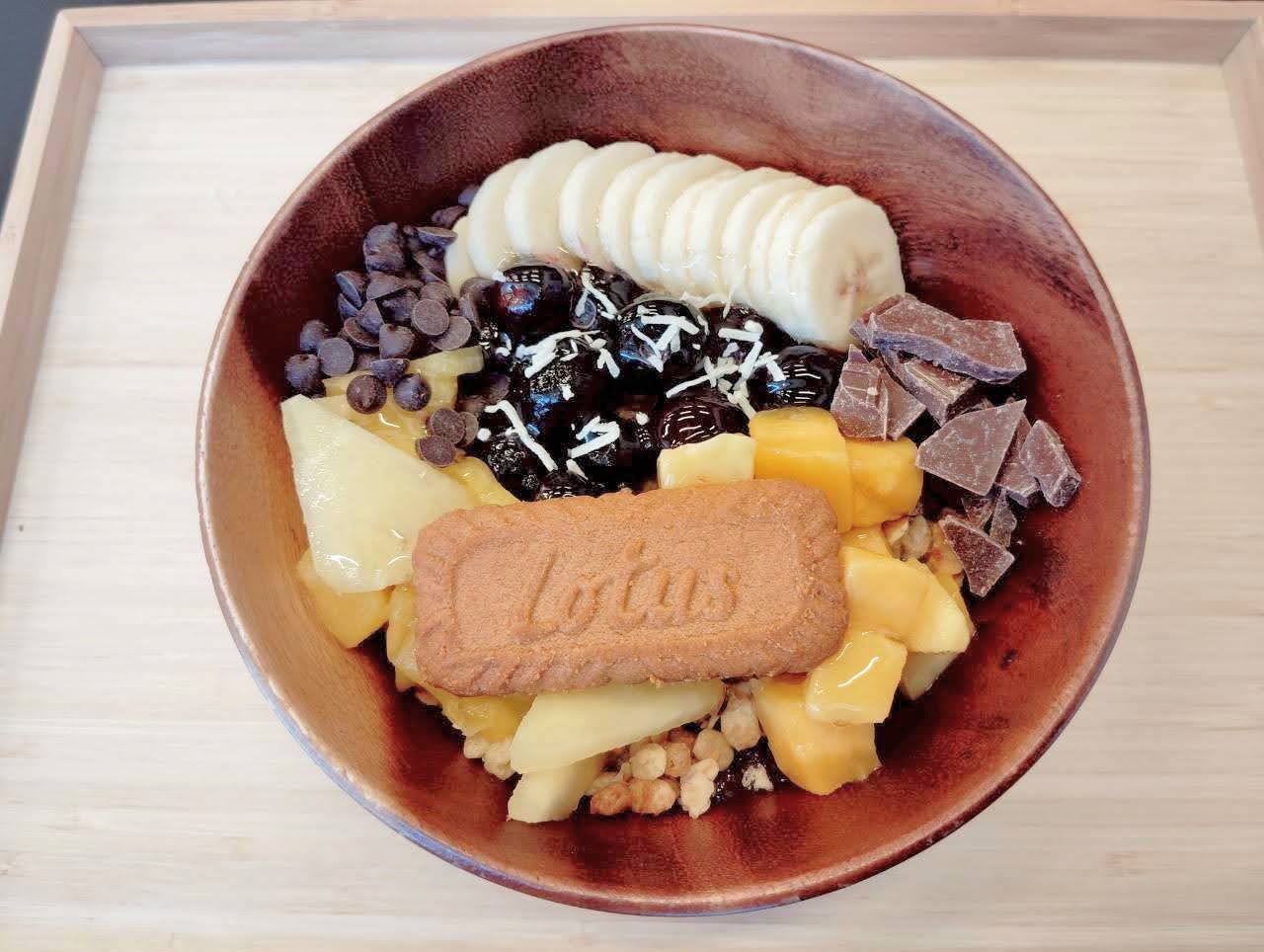 標準トッピング(ロータスビスケット・グラノーラ・はちみつ・ココナッツ)がのっていて、見た目も華やか!