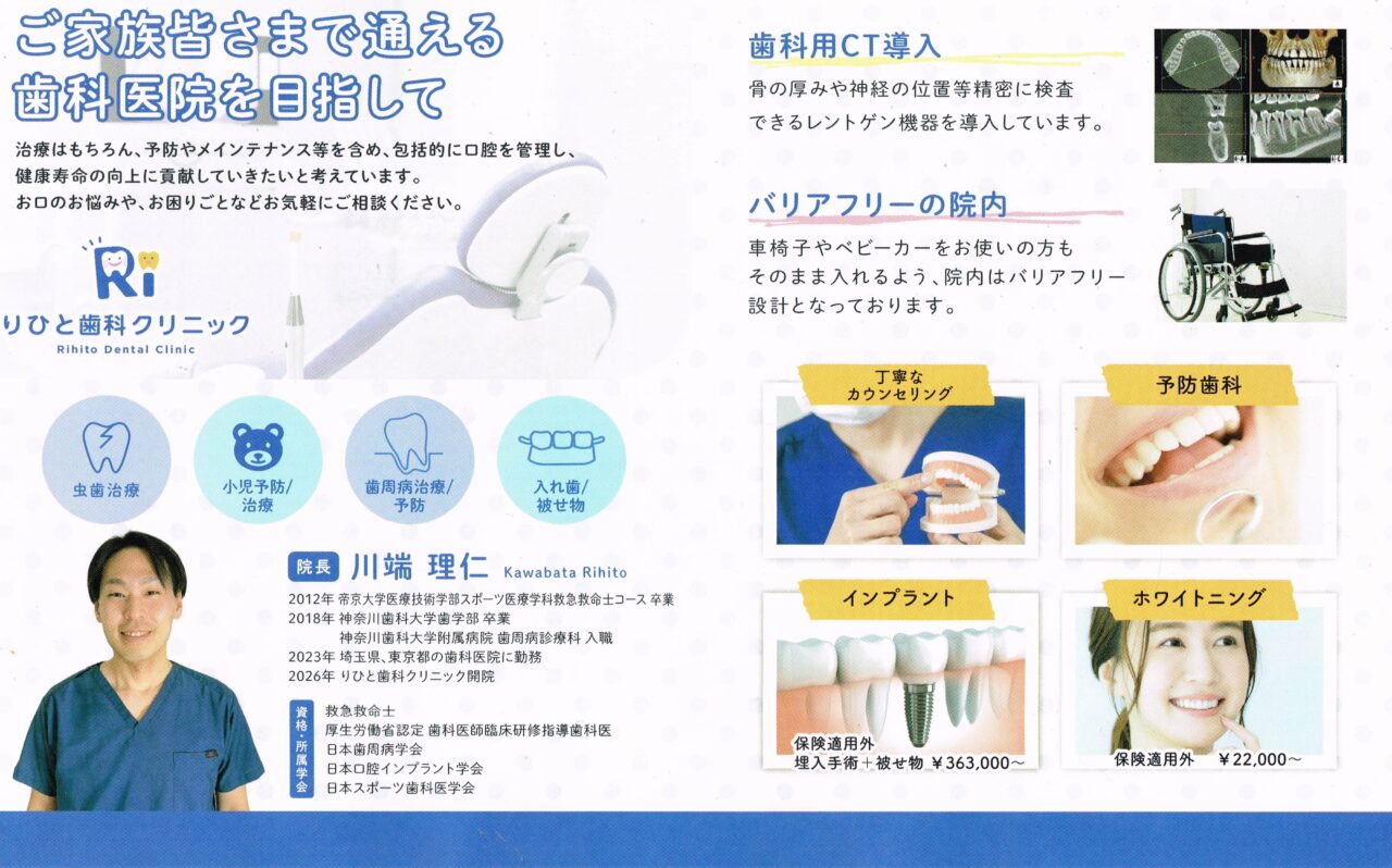 新しくオープンする「りひと歯科クリニック」では、開院に先立ち、院内の設備や雰囲気をチェックできる内覧会(見学相談会)が開催されます。