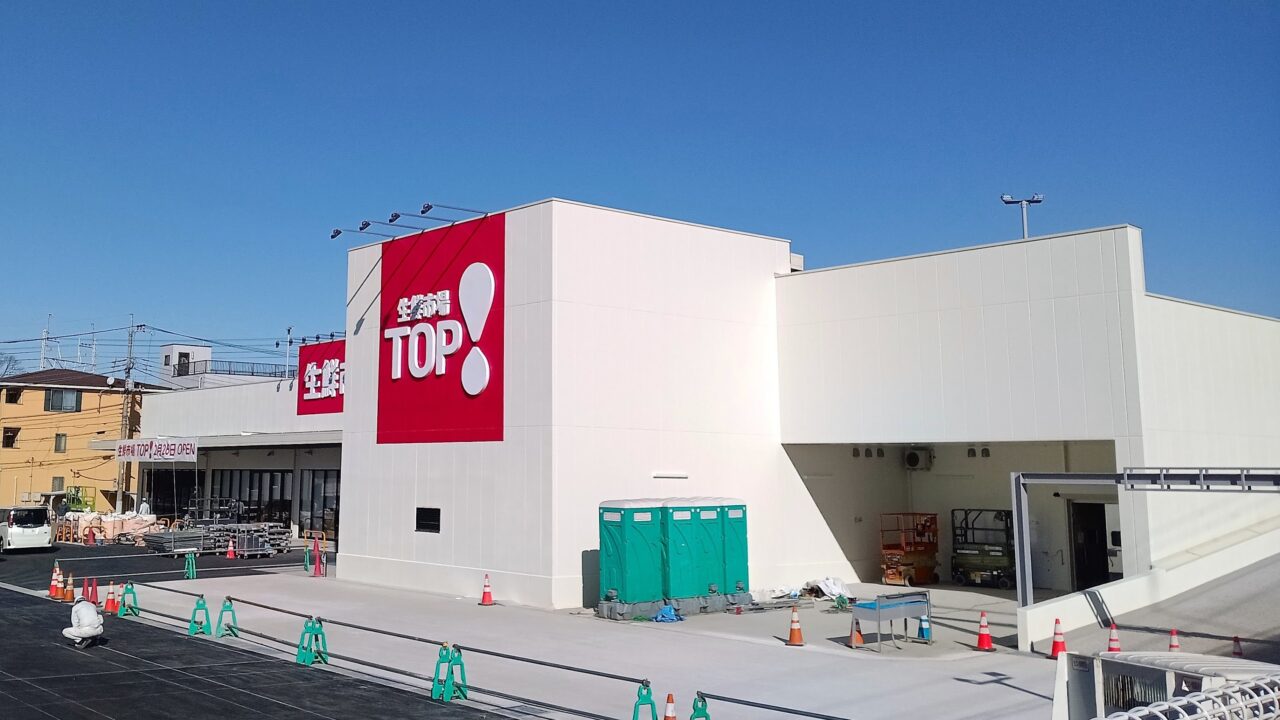 今回の「生鮮市場TOP新座店」は、店舗面積約1,983㎡という大型規模。好調な「TOP」業態を新座の重要拠点に投入することで、エリアの買い物環境が劇的に変わることが予想されます。