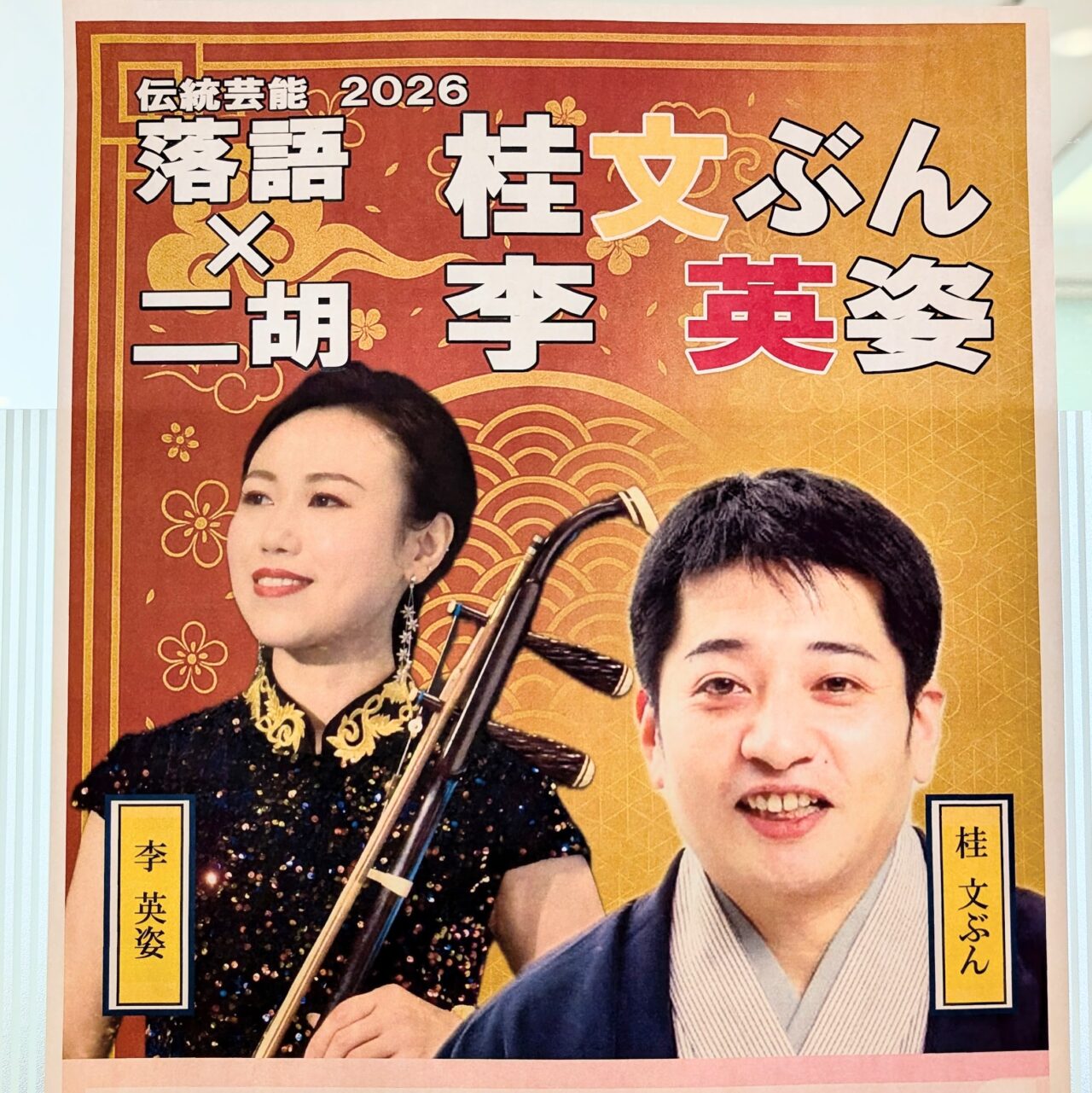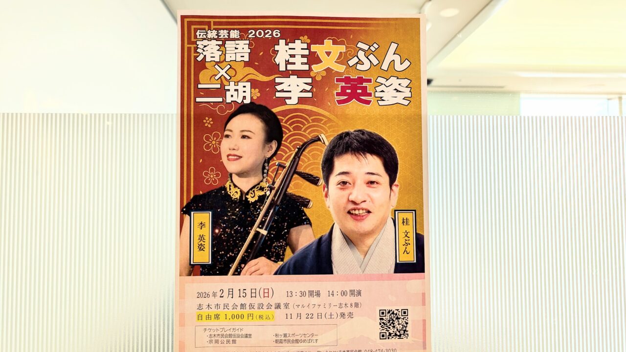 【志木市】2月15日マルイファミリー志木で!落語家・桂文ぶん×二胡・李英姿が贈る「和と中の伝統芸能」を1,000円で堪能