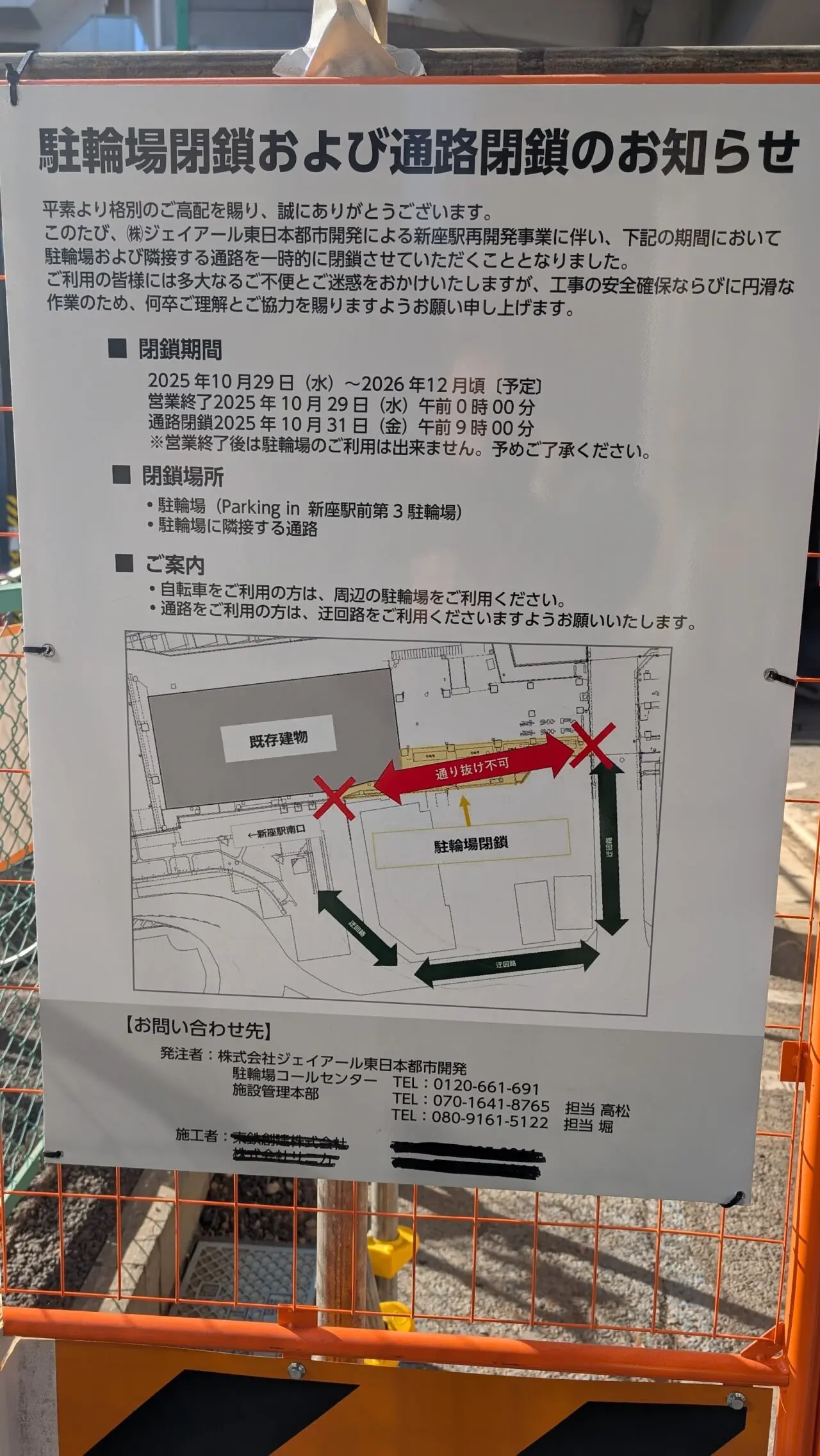 駐輪場の閉鎖・移転: 駅近の駐輪場が再開発の影響を受けています。最新の配置図を確認することをおすすめします。