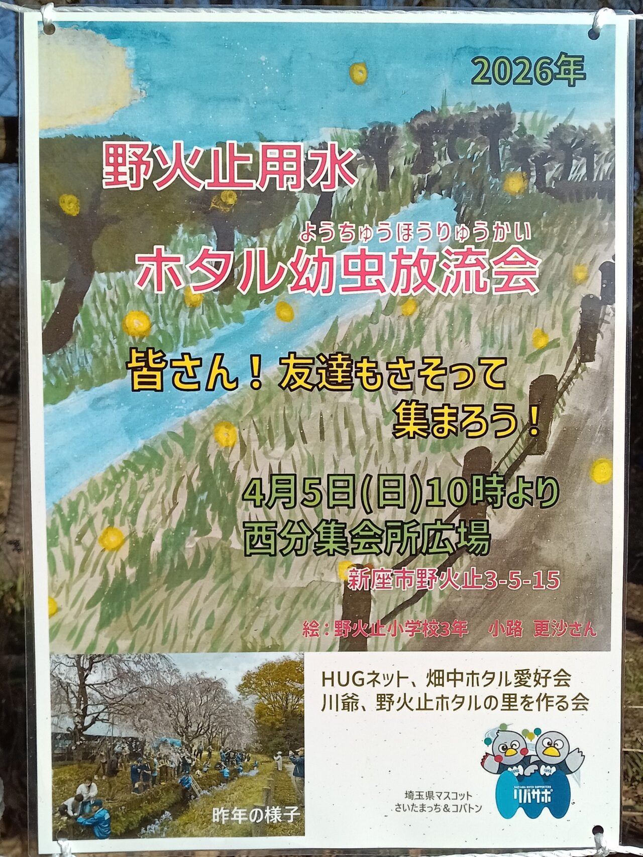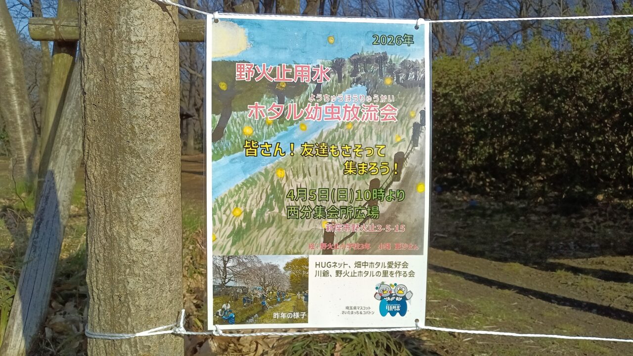 【新座市】4月5日開催 野火止用水でホタルの幼虫放流会!新座の夜を彩る光の舞をみんなで守ろう!